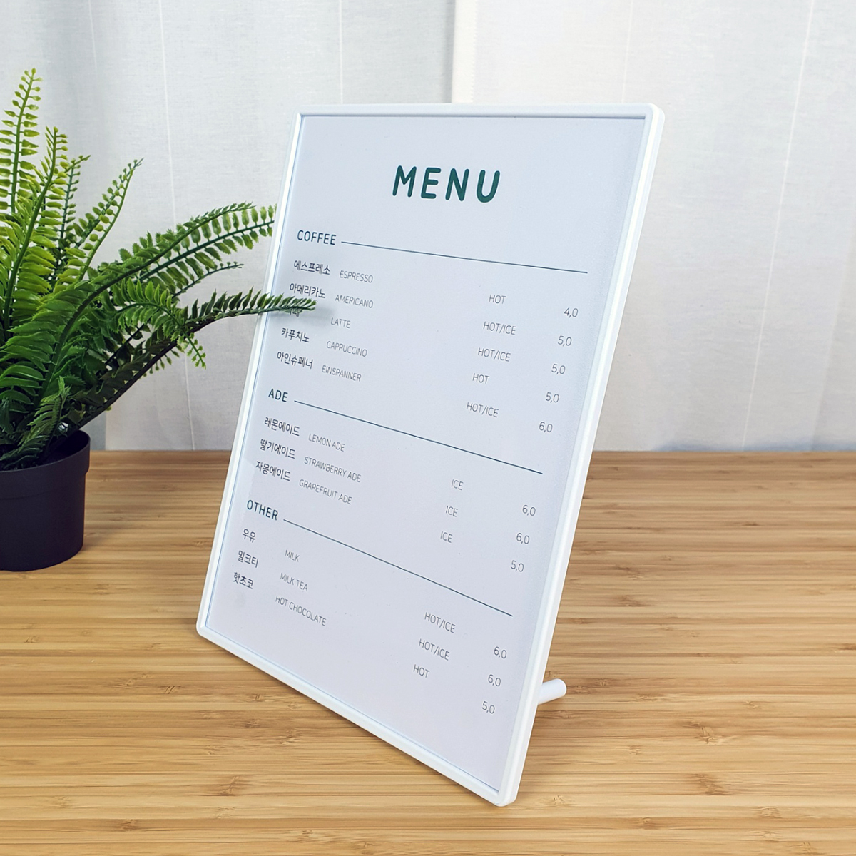 | 아크릴투명 자석액자 카페메뉴판 테이블메뉴판 (0) | 2020.11.08 |