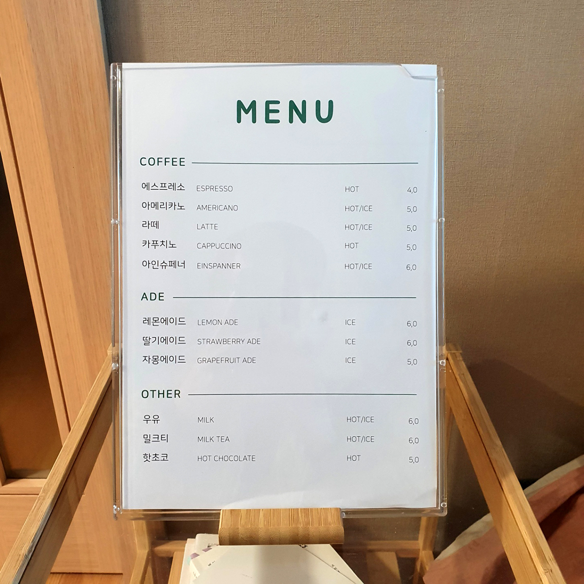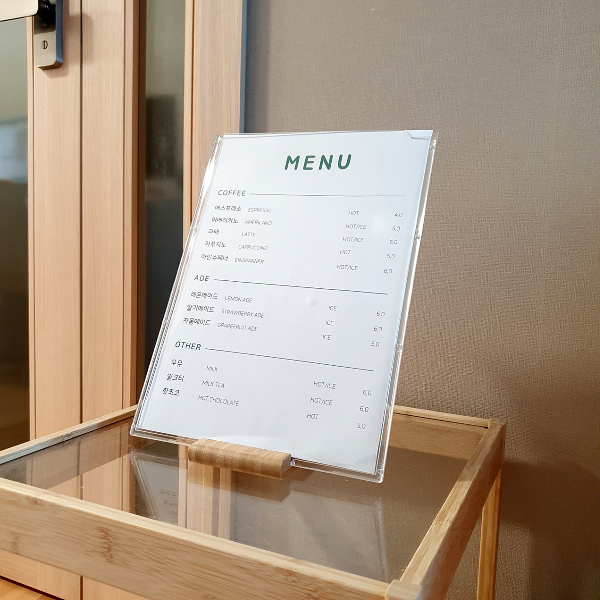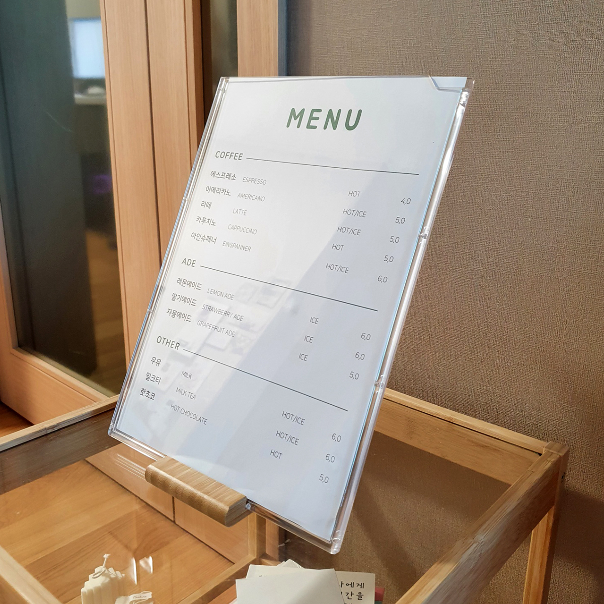 보기좋은 각도 카페메뉴판