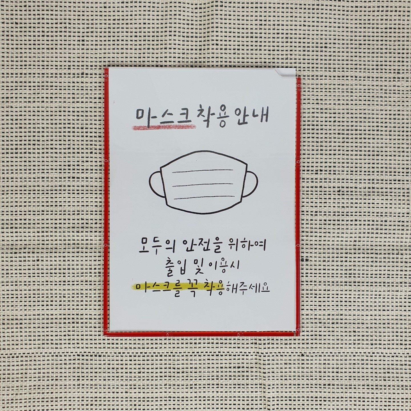 마스크착용안내 부착용 투명액자 아크릴액자 A4 : 광고파트너 디피지샵