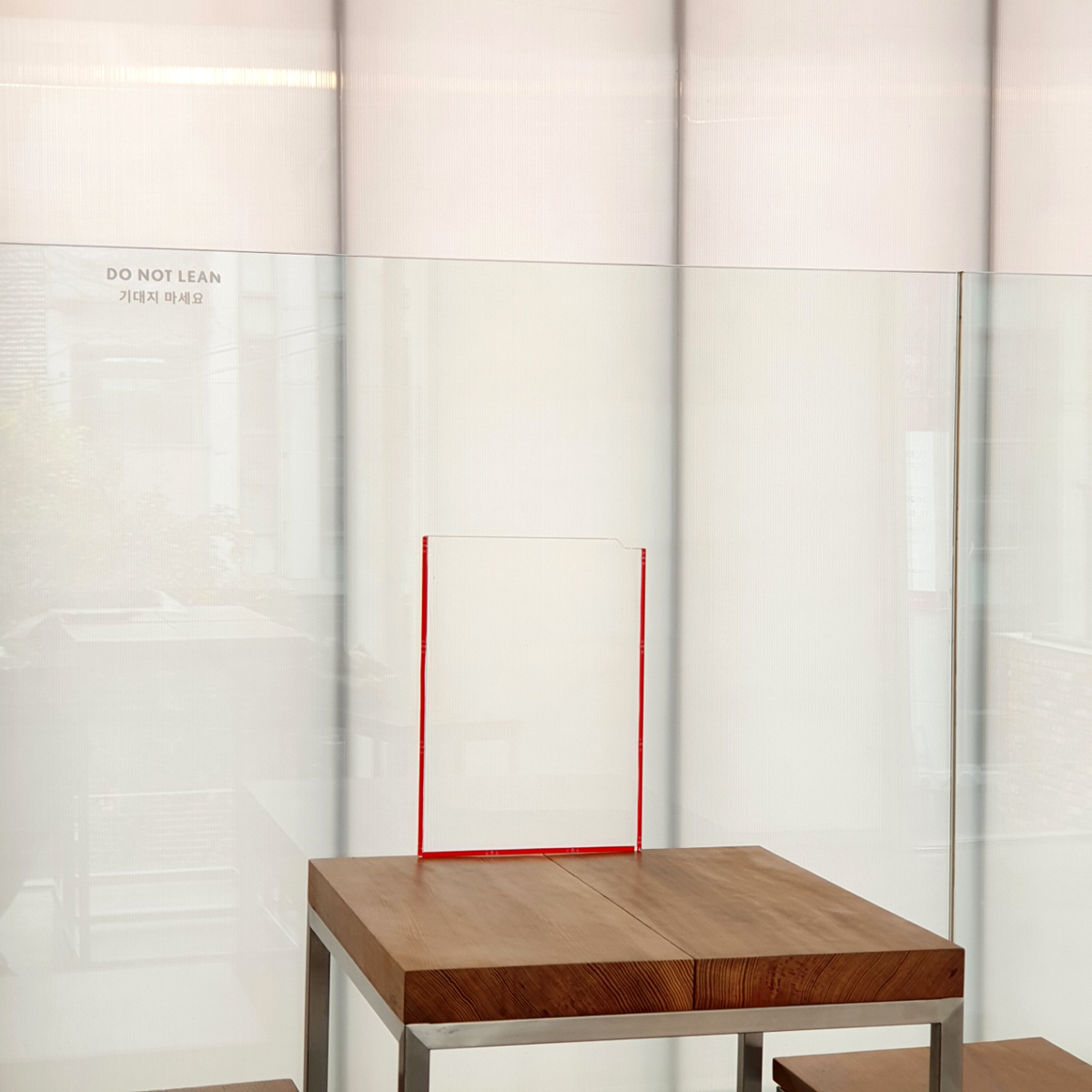 유리 안쪽면에 부착하여 외부에서 보면 깔끔한 연출이 가능합니다.