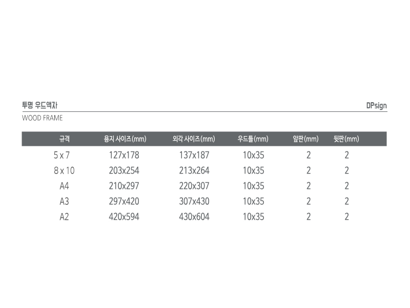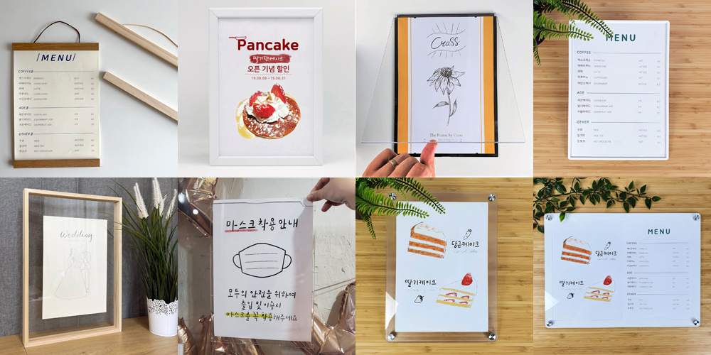 우드 원목 소형 사진 액자 A6 A5 A4 A3 탁상 나무 아크릴 투명 프레임 메뉴판