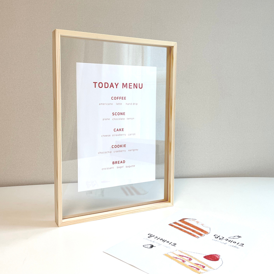 우드 원목 소형 사진 액자 A6 A5 A4 A3 탁상 나무 아크릴 투명 프레임 메뉴판