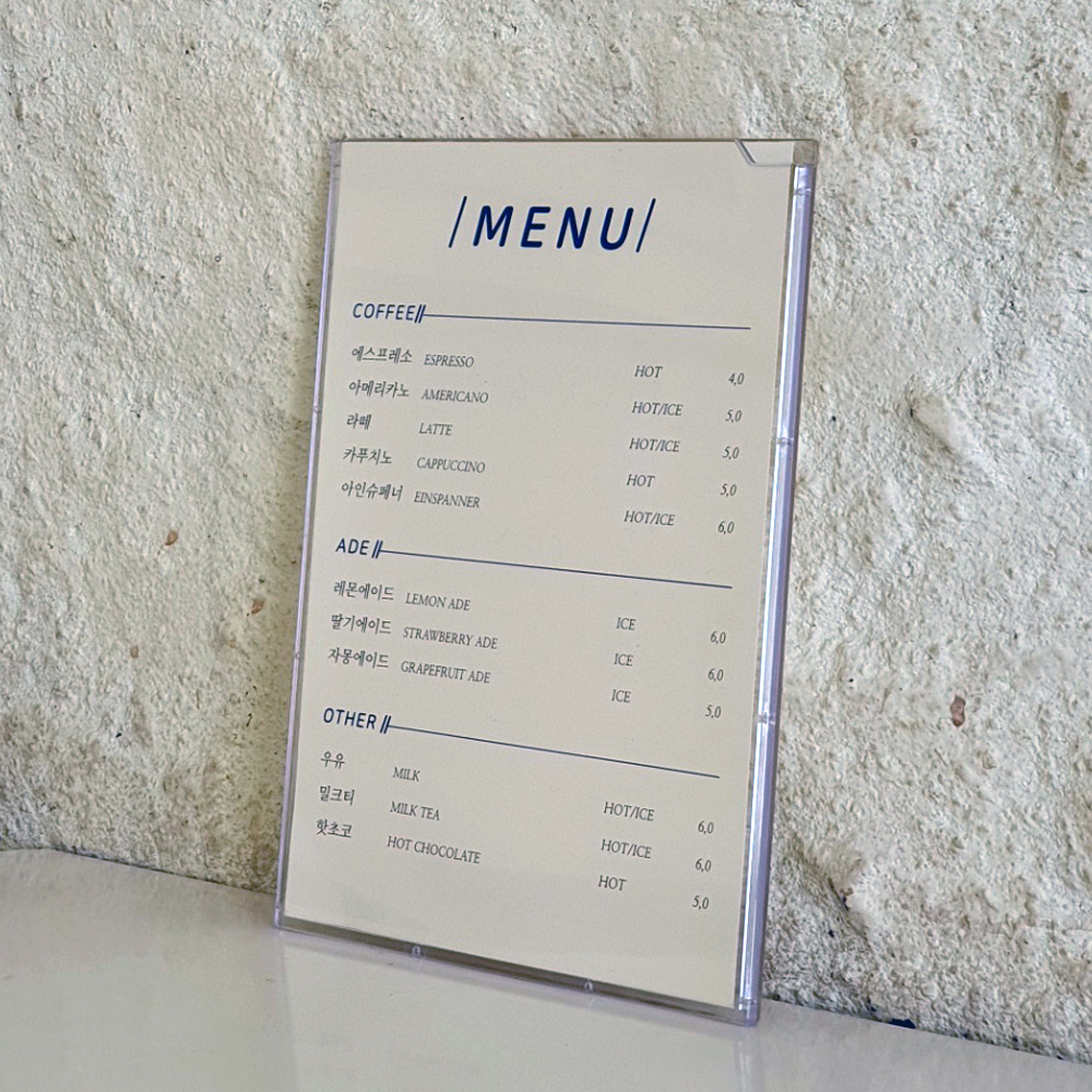 | 투명액자 카페메뉴판 A5 A4 A3 A2 A1 사이즈 (0) | 2021.11.18 |