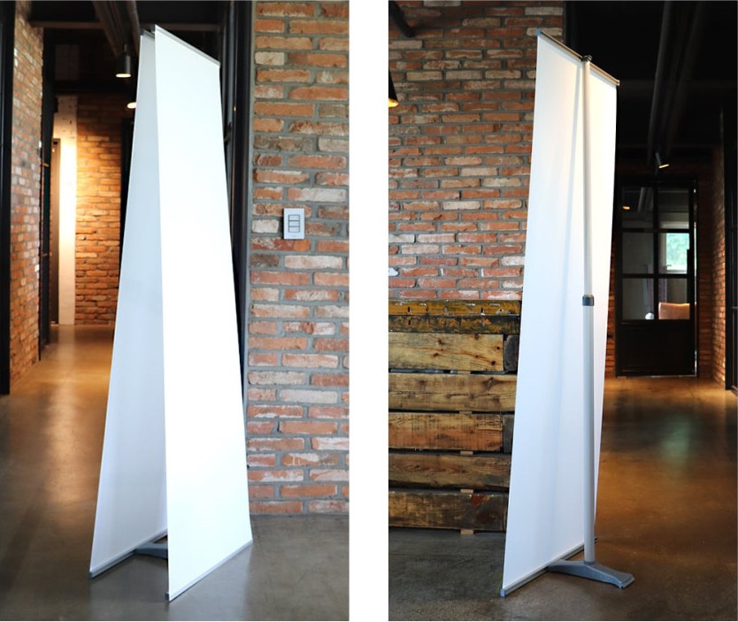 여러게 놓여 있는 입간판보다 아래처럼 연결해서 사용하면 깔끔하게 사용가능합니다.