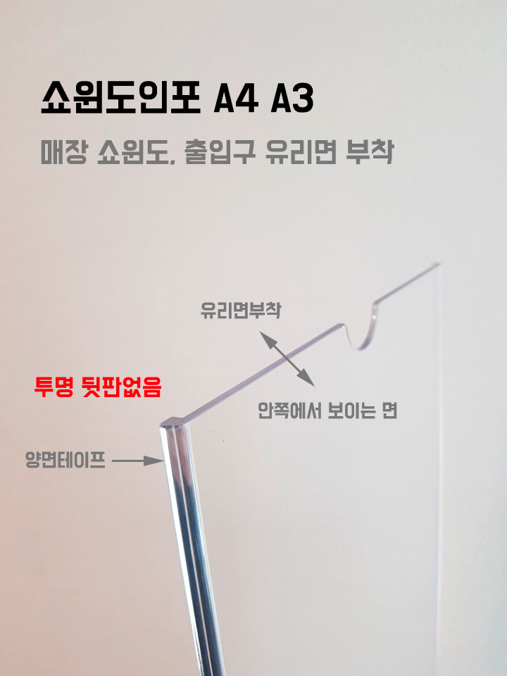 매장 사무실 입구 유리면에 사용하기 좋은 쇼윈도인포 - A3 A4 A5