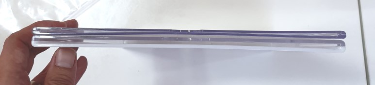 사출 제품 특성상 얇게 뽑으면 위처럼 휨 현상이 발생하여 입구를 받고 있습니다.