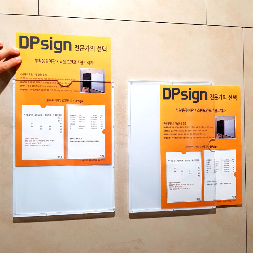 아래 DPsign 부착용꽂이판을 보시면 중간 손잡이 부분에도 충분한 여유 공간을 확보하고 있습니다.