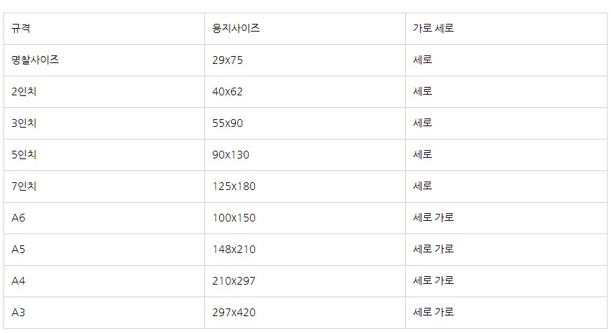 규격사이즈 A3 A4 A5 A6 세로, 가로 형 출시