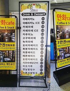 철재간판4 레트로간판 만들기 셀프간판 쇼윈도인포 양면간판 레트로간판 만들기 셀프간판 쇼윈도인포 양면간판 창업준비시 꼭 필요한 상호 정하기 그럼 상호 정하면 간판설치해야하는데 가격이 너무 부담스럽죠 이제는 부담없는 가격에 간판 달아보세요 튼튼한 철재간판 40x20cm, 40x40cm 두가지 사이즈 두가지 색상 블랙, 화이트 매장의 시작, 끝 모퉁이마다 하나씩 ^^ 쇼윈도인포양면간판40x40바로가기 쇼윈도인포양면간판40x20바로가기 2019. 3. 2. 외부철재배너 채움 이동편한 바퀴 요즘대세 철재배너 철재입간판 매장외부 내부에 안내판, 메뉴판, 전시장안내 등 다양하게 사용 바스켓이 있어 꾸미기 좋은 제품입니다. 바퀴추가하면 실내외로 이동도 편리해서 좋아하는 상품 위 사진에서 만화cafe 제품 네모 박스에 바퀴부착 빈틈없이 조립 바스켓입간판채움바로가기 배너거치대바로가기 물통추가 가능한 신제품 스틸입간판 스틸입간판바로가기 2017. 4. 25. 체험존 전시장 고급매장 철재입간판 프레임배너 체험존 전시장 고급매장에서 주로사용하는 철재입간판 프레임배너 차량전시장 백화점에서 주로 사용하고 있는 실내배너 프레임배너 소 중 대 다양한크기 간단한 조립으로 거치대 설치 기존 배너거치대와 비교 프레임배너 소 프레임배너바로가기 2017. 3. 15. 매장 입간판 튼튼한 철재입간판 매장 입간판 튼튼한 철재입간판 원목입간판에서 철제 입간판으로 넘어갔네요 무게감있고 튼튼한 입간판입니다. 착한가격으로 팍팍~~ 입간판바로가기 2016. 12. 12. 이전 1 다음