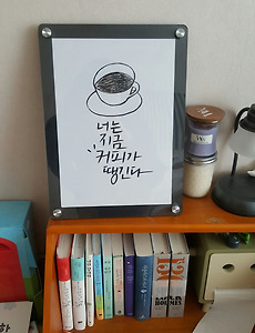 캘리1 아크릴액자 매장 디스플레이 액자 자석타입 캘리액자 아크릴액자 매장 디스플레이 액자 자석타입사업을 하는 모든곳 + 가정에서 필요한 멋 스러운 액자 가격대비 좋은 간단히 a4용지에 손글씨 삭삭~~ 지금 위 사진은 A4 타입 사진용 A3 생산 자석타입이라 앞에서 다보을 살짝 들어 내용물 교체 일반 프린트로 간단하게 타입핑후 출력 인테리어액자바로가기 2017. 3. 31. 이전 1 다음
